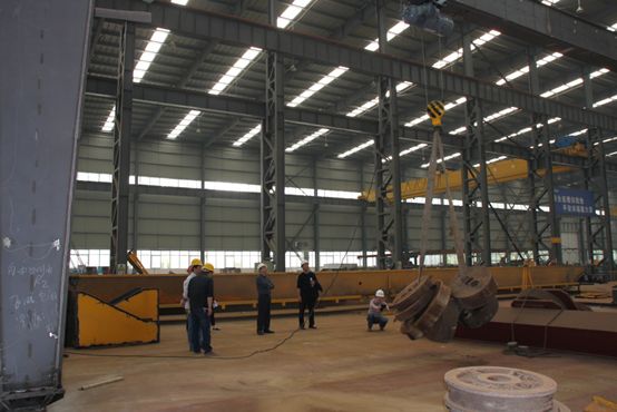 2015年10月19日,雷火电子迎来了江南造船厂及船东一行四人,就三台船用起重机进行的厂内载重实验。下午一点半在公司董事长王立建的带领下,三方代表共计二十余人到车间进行了细致的载重实验及验收,验收过程中得到了用户的现场表扬及认可,他们对东起制造的船用门式起重机给予了高度的评价。此项目为我公司在开发船用起重机领域揭开了又一新篇章。